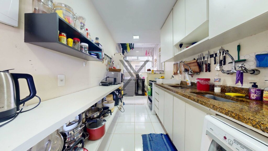 A cozinha tem um ótimo tamanho e boa quantidade de armários, além de bancadas para apoio e organização. Em anexo, lavanderia e dependência completa para funcionários.